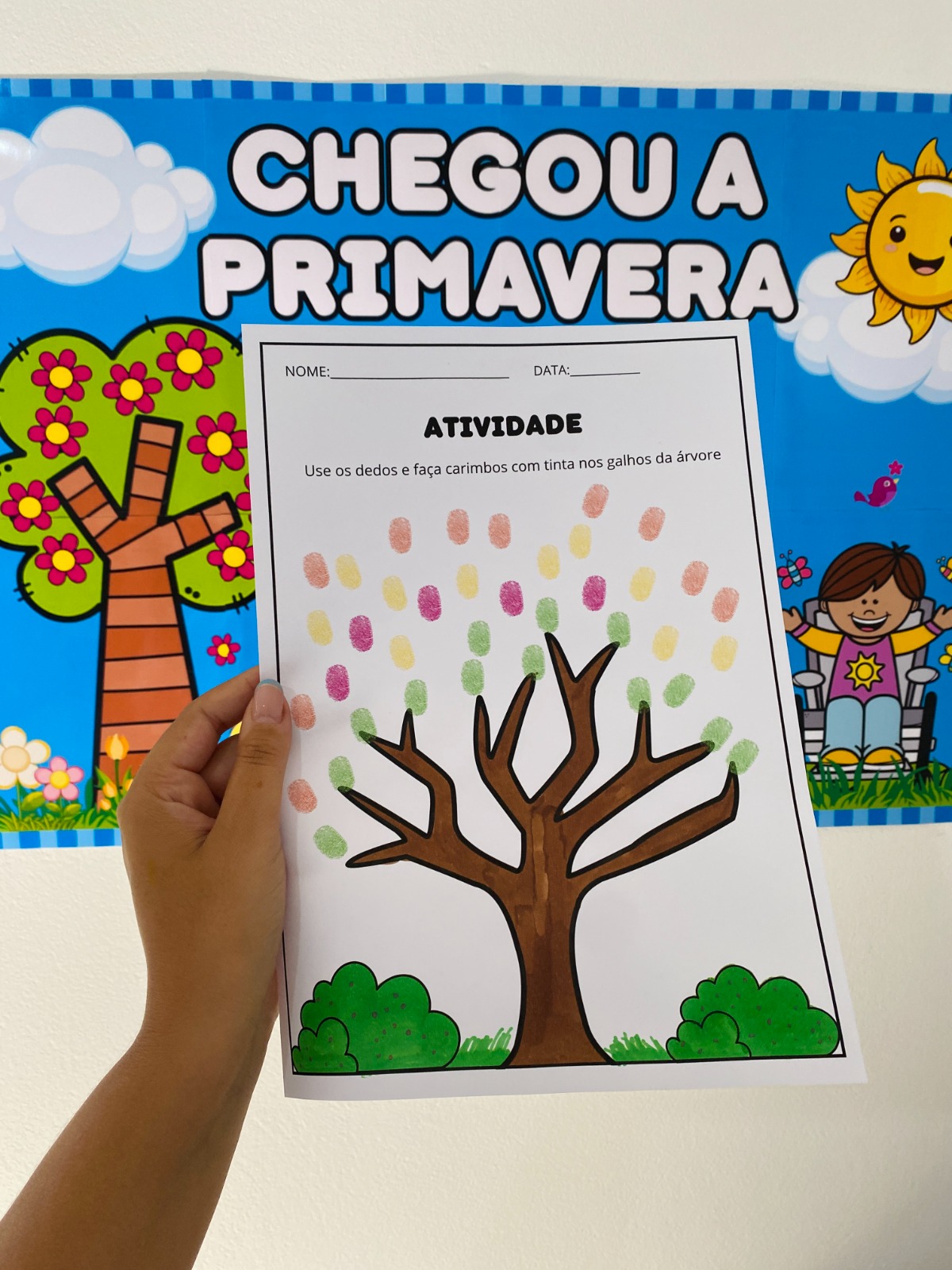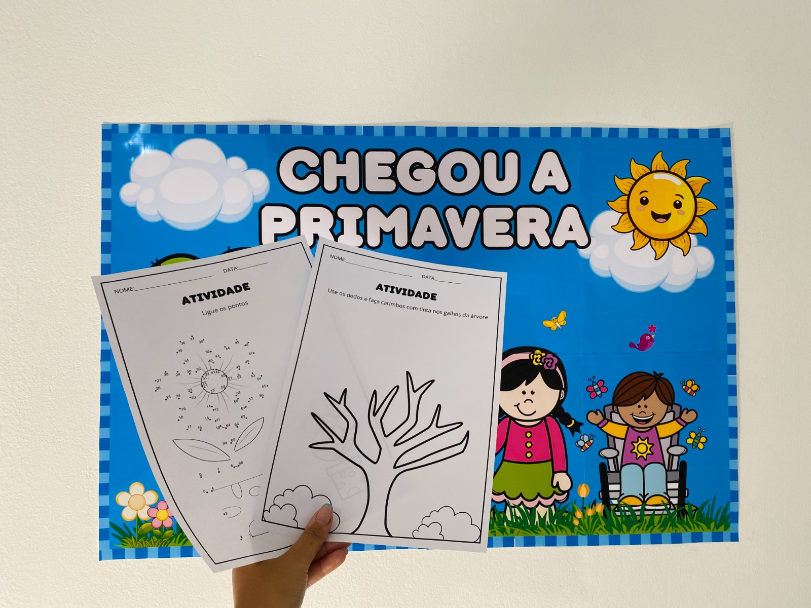 ✅ Painel de Primavera – Ampliado em 8 folhas A4, com cores vivas e ilustrações encantadoras para decorar o ambiente.