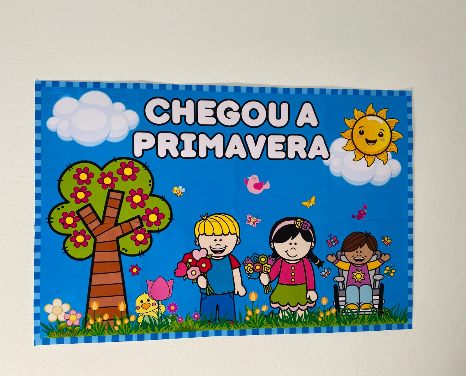 Deixe a sua sala cheia de alegria com este painel super vibrante “Chegou a Primavera”, perfeito para decorar e trabalhar o tema com as crianças de forma lúdica e divertida.