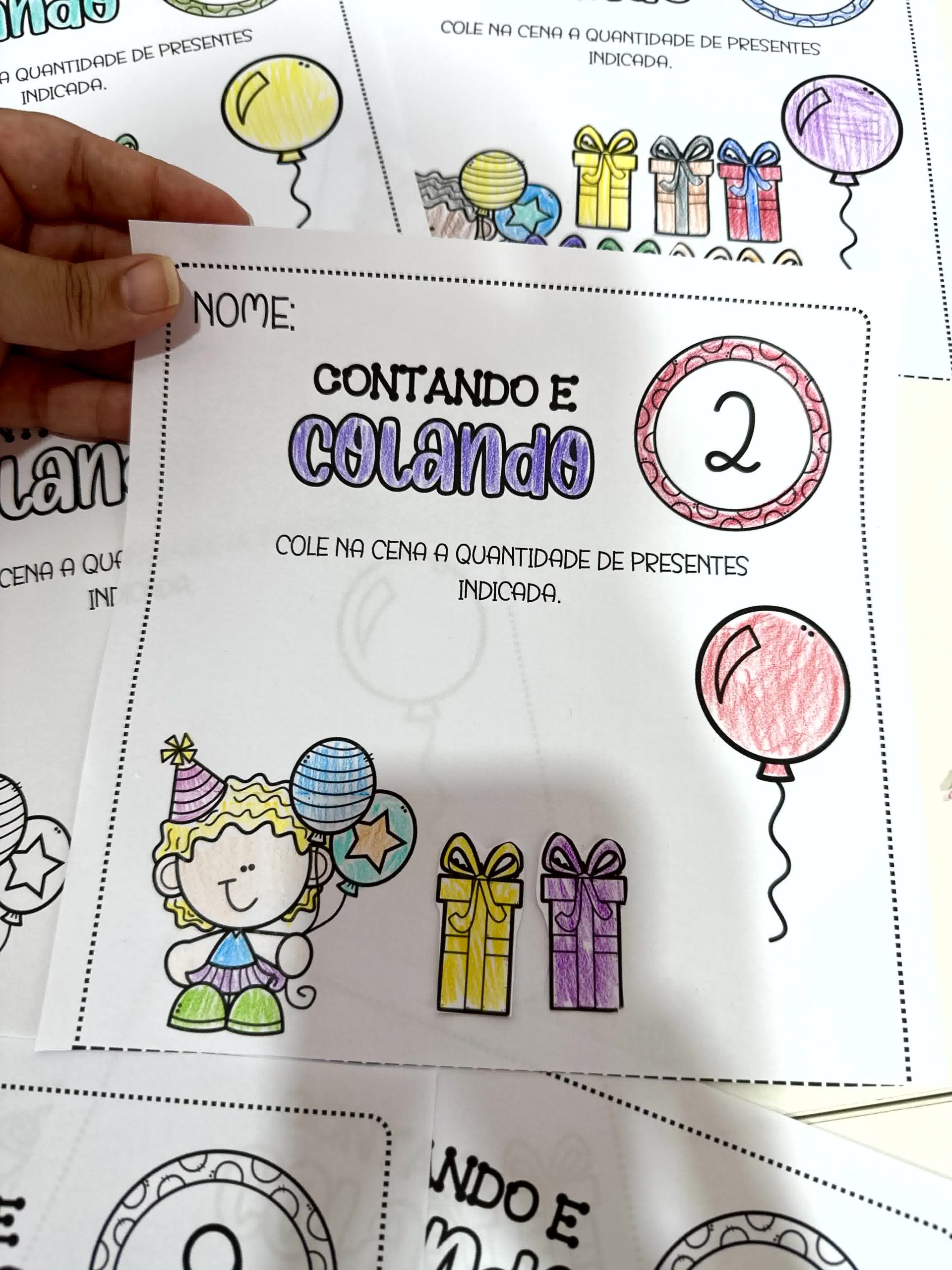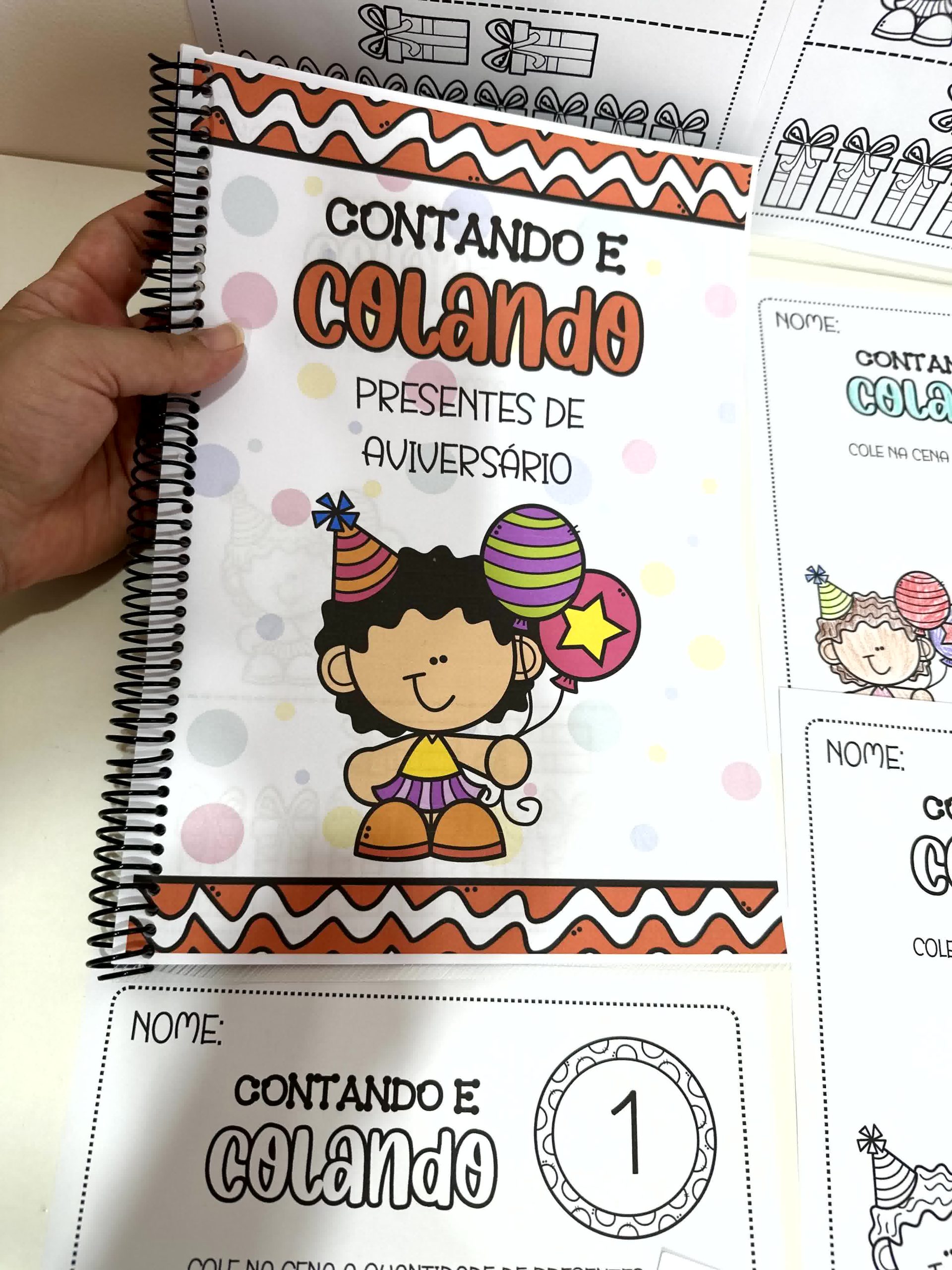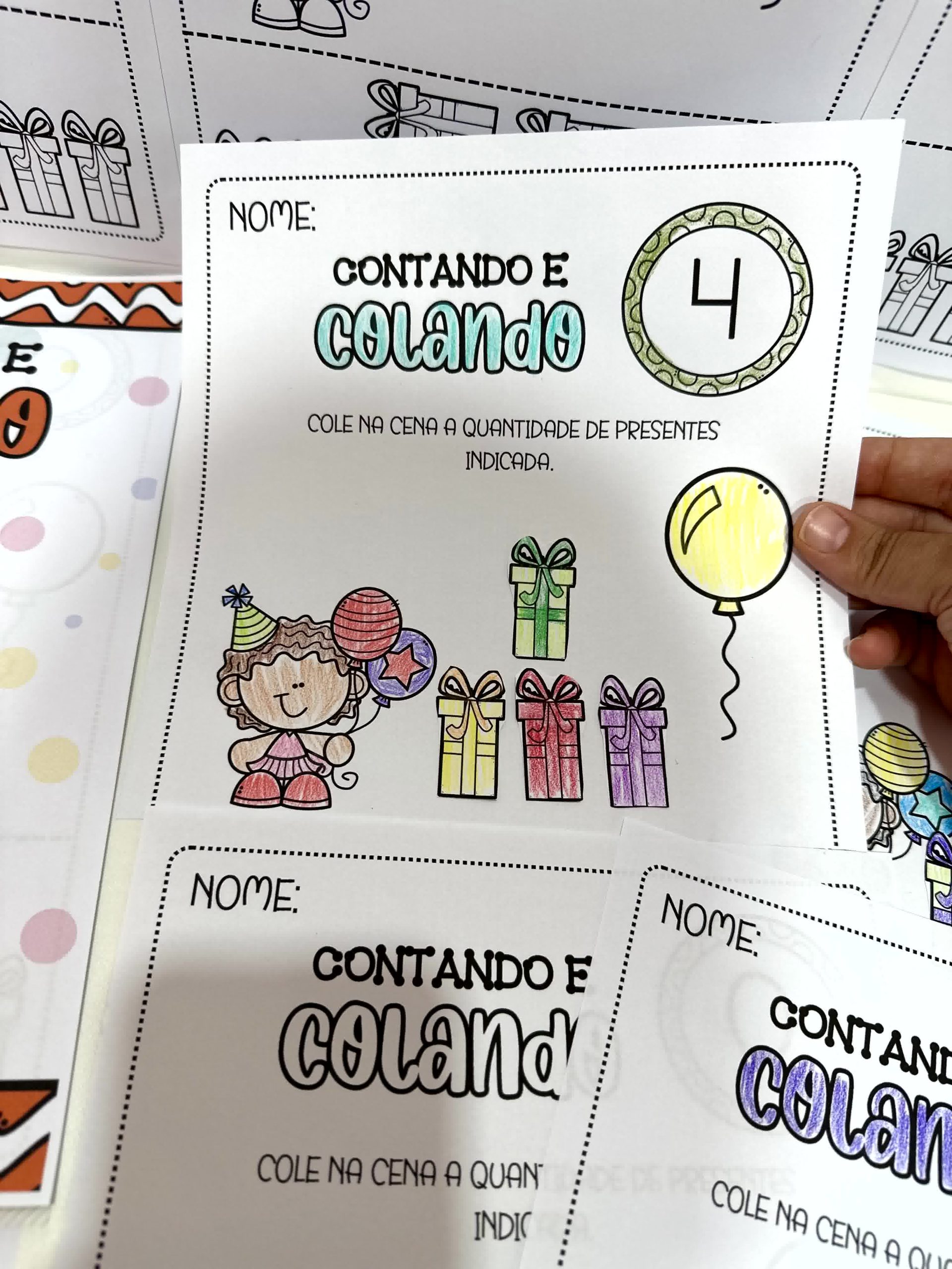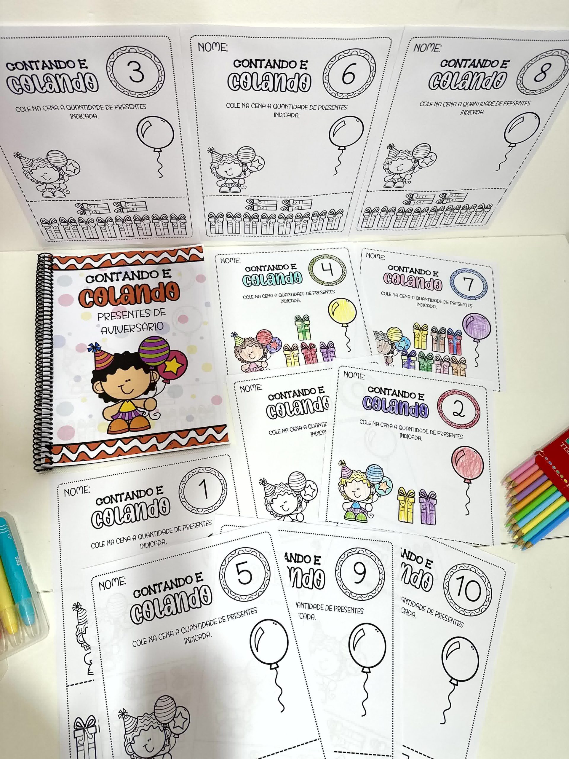 Apostilas Contando e Colando – Presentes para trabalhar numerais de 0 a 10 com crianças da Educação Infantil.