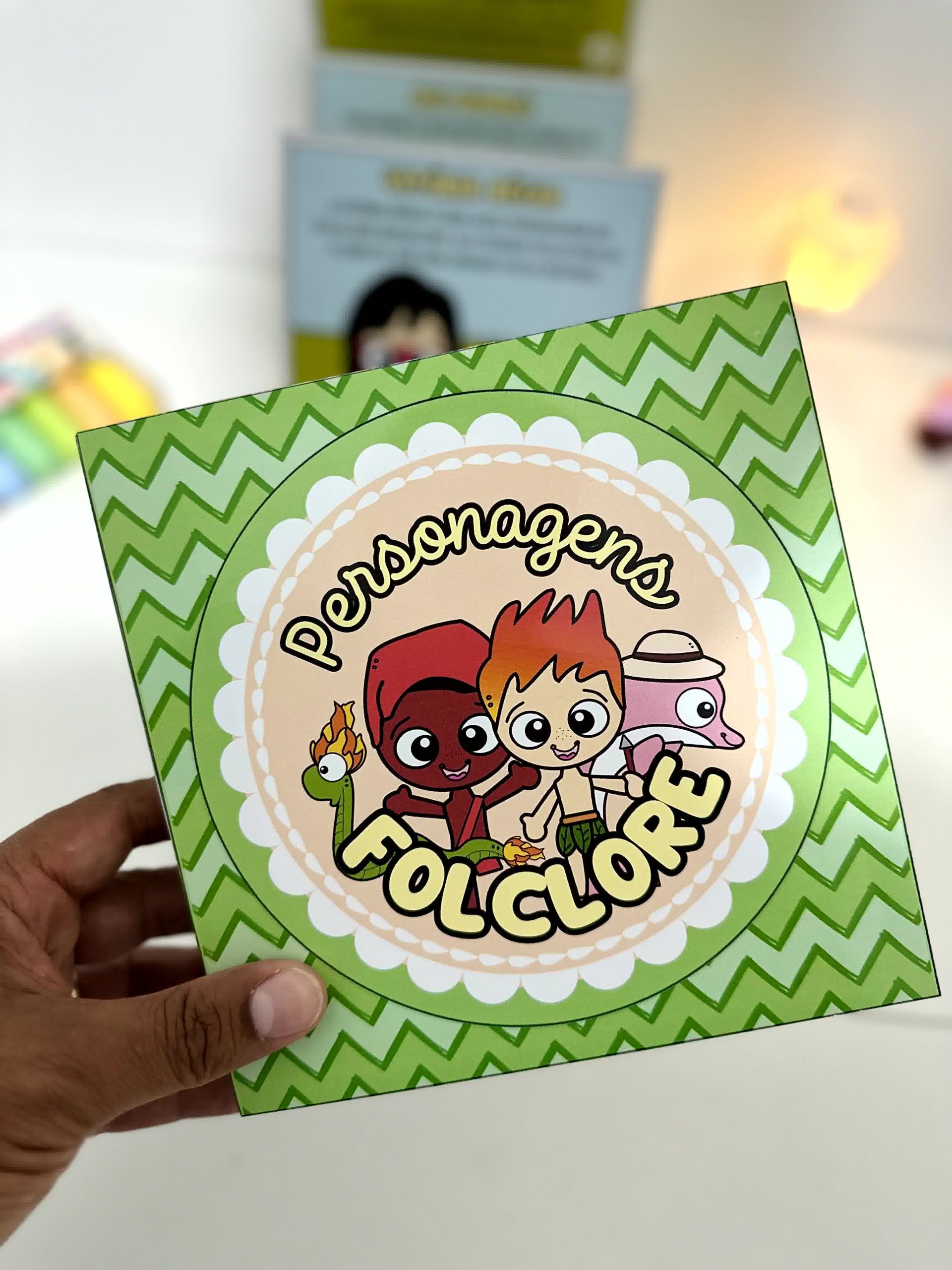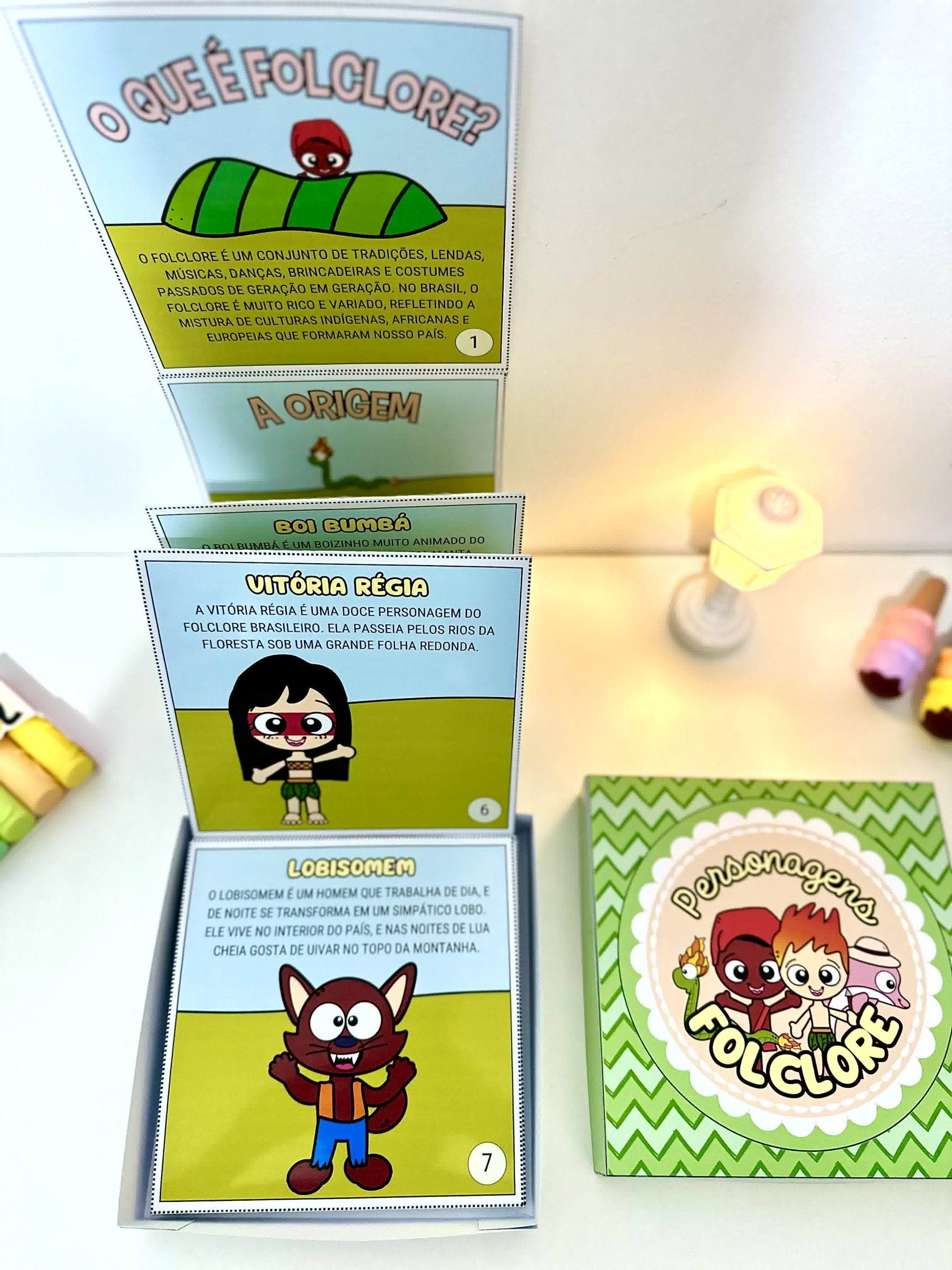 Livro na Caixa com a história do Folclore Brasileiro e também apresentação dos principais personagens.