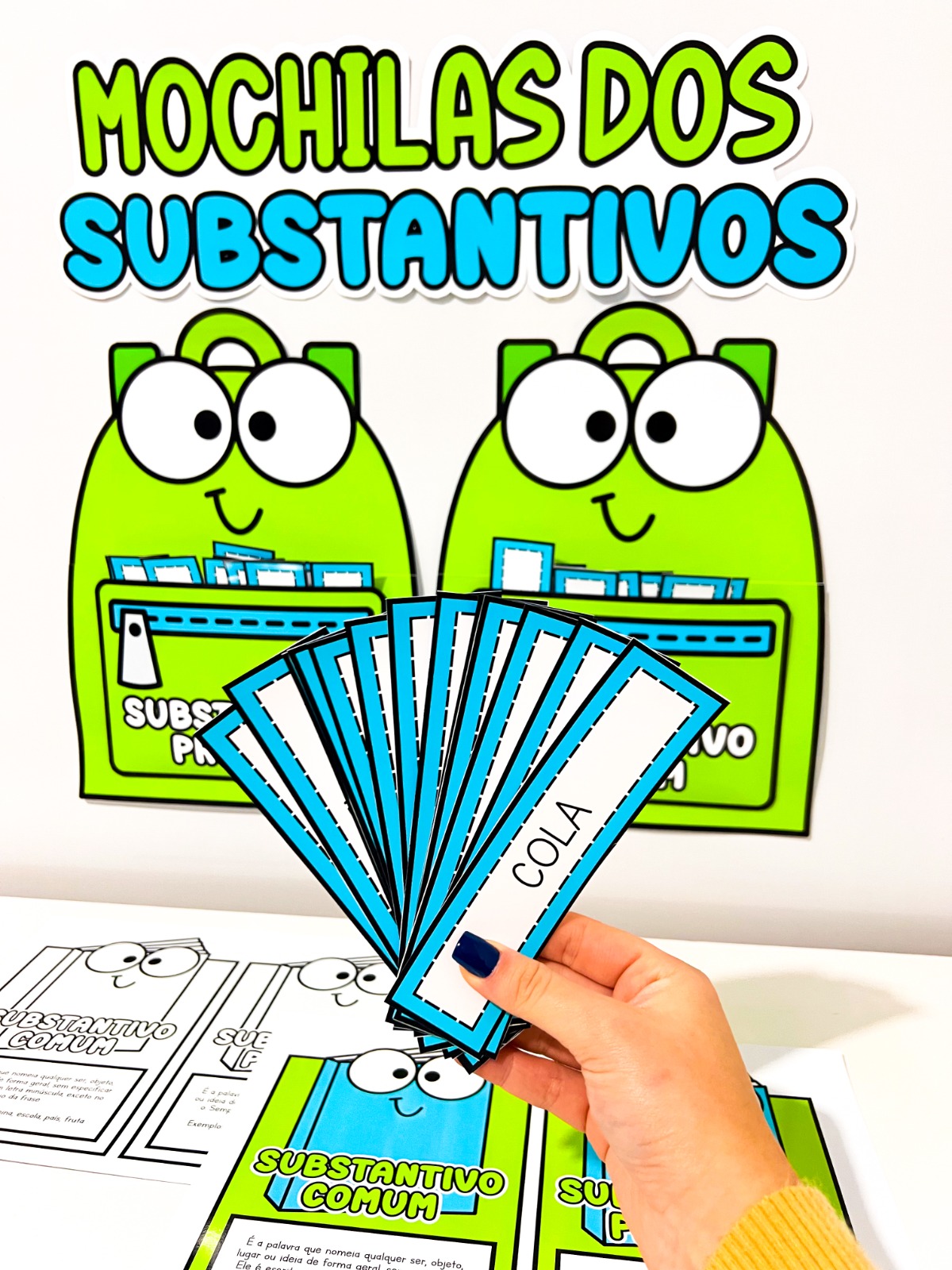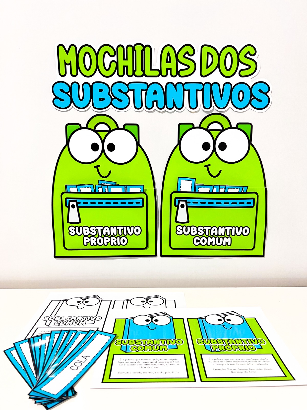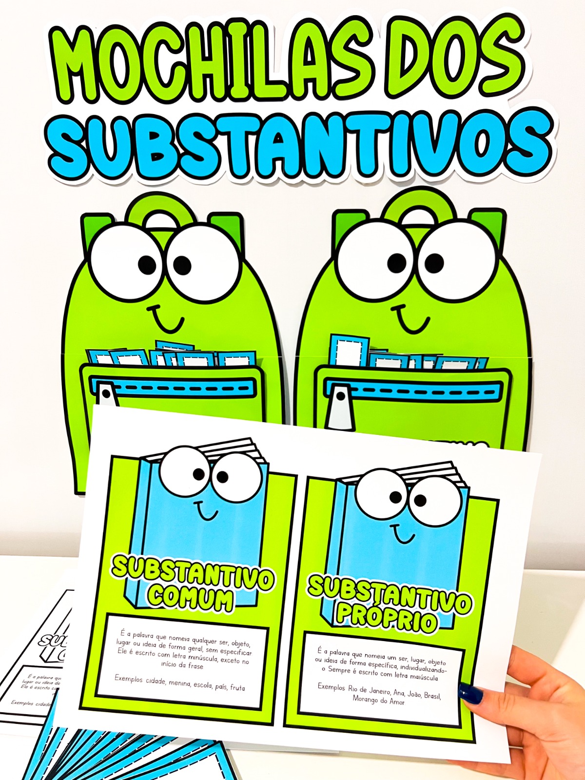 O material Mochilas dos Substantivos foi criado para ajudar as crianças a identificar e classificar substantivos comuns e próprios de forma clara, prática e divertida.