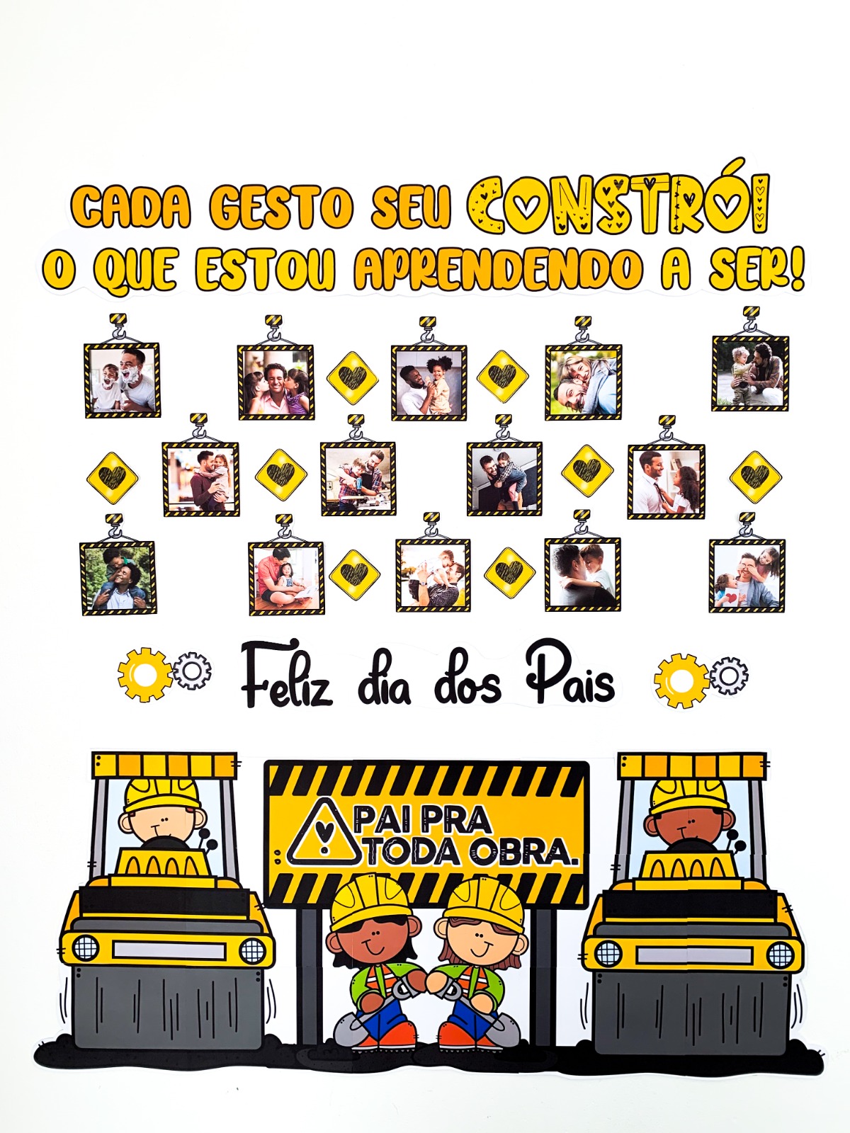 No tema Pai pra Toda Obra, cada detalhe tem intenção: os capacetes, as máquinas, as placas… tudo representa o papel fundamental dos pais nessa jornada de amor e cuidado.