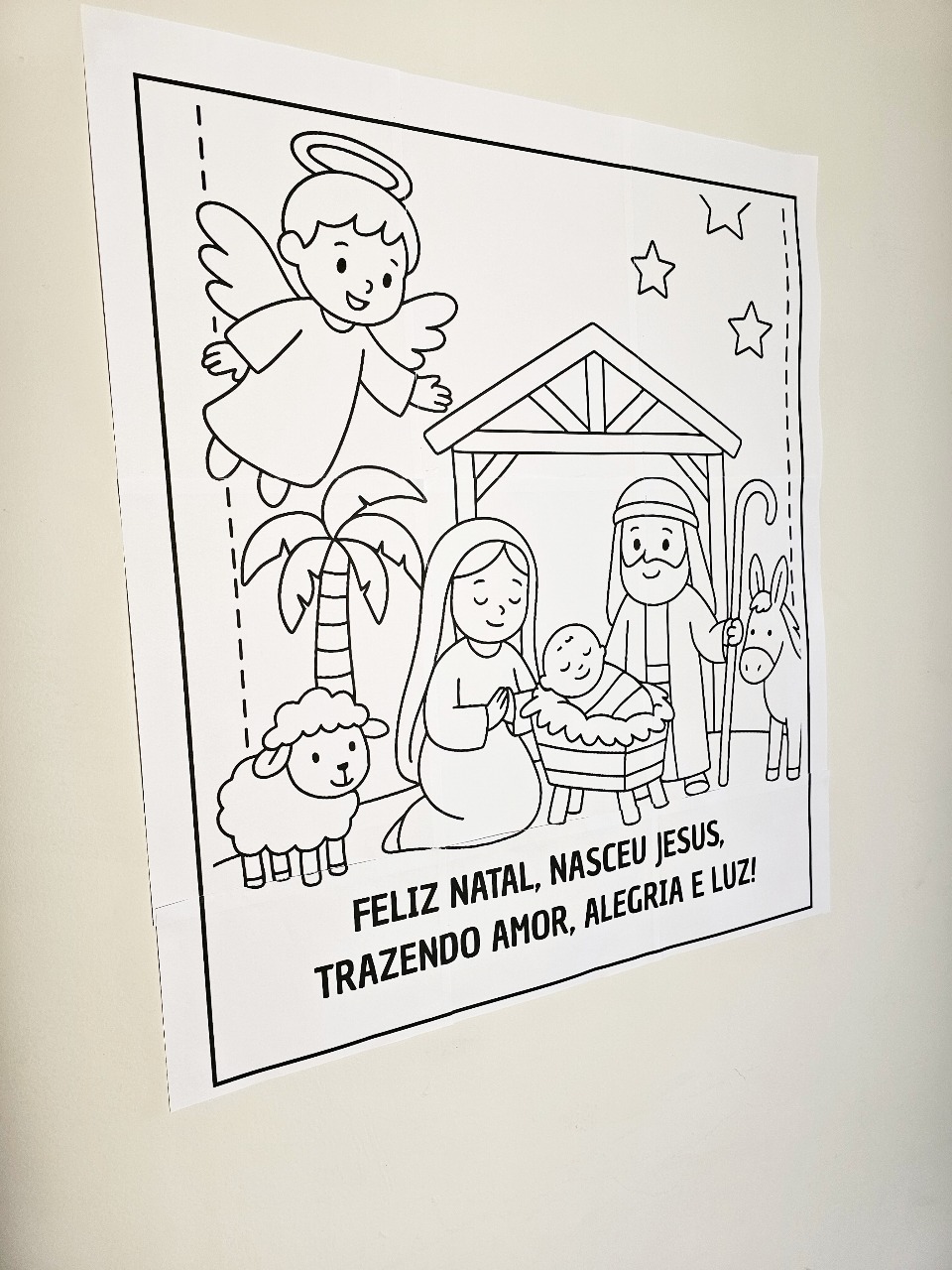 Este painel ampliado do Nascimento de Jesus é perfeito para envolver as crianças em uma atividade artística cheia de significado e fé. 💛