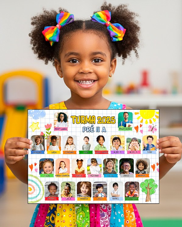 Apresente às famílias uma lembrança cheia de significado: o Quadro da Turma, um presente especial para fechar o ano com carinho, identidade e muita emoção.